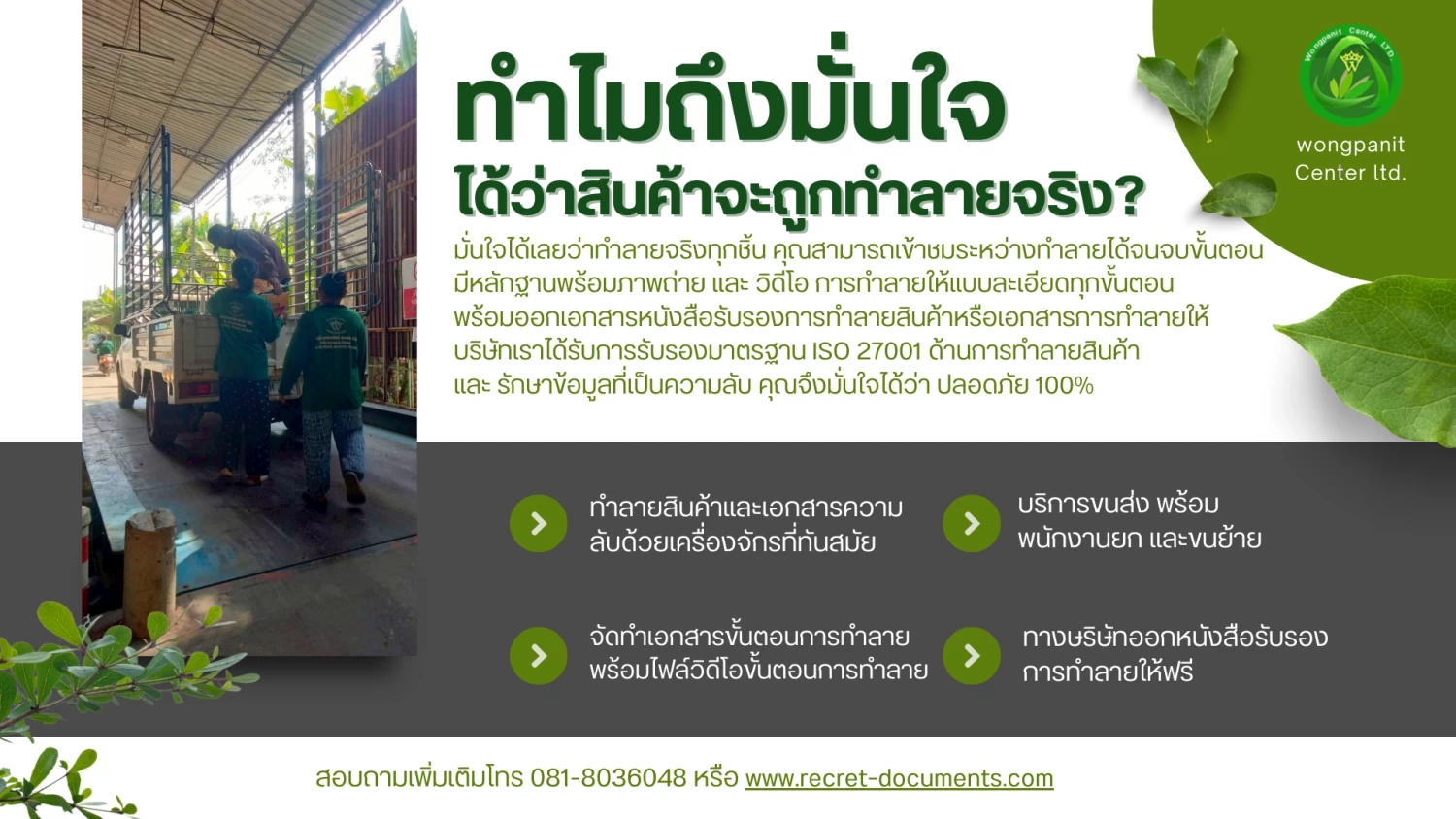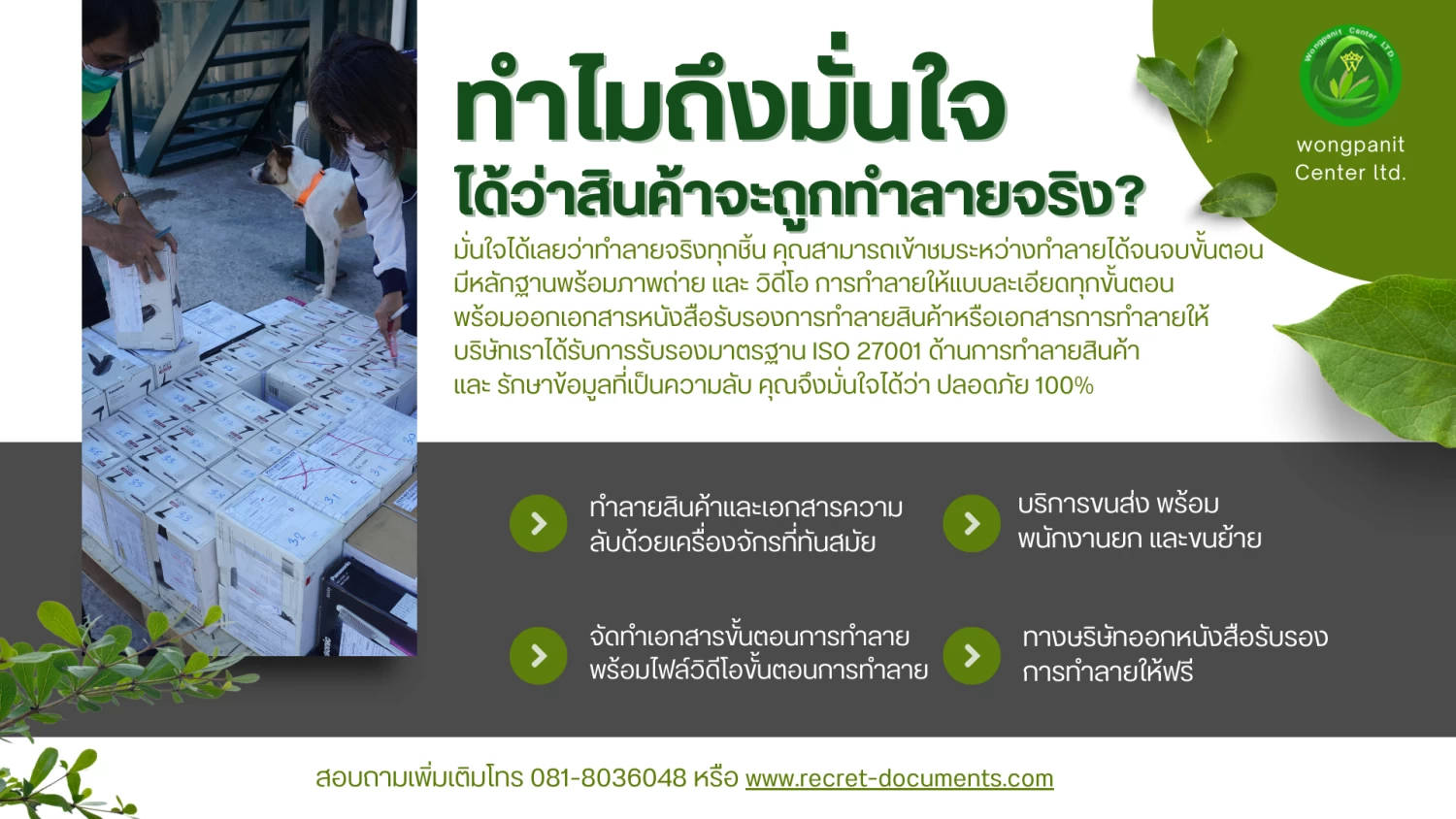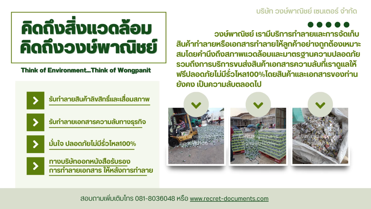☢️ บริการรับทำลายเอกสารความลับ และ สินค้าลิขสิทธิ์และสินค้าเสื่อมสภาพ ♻️