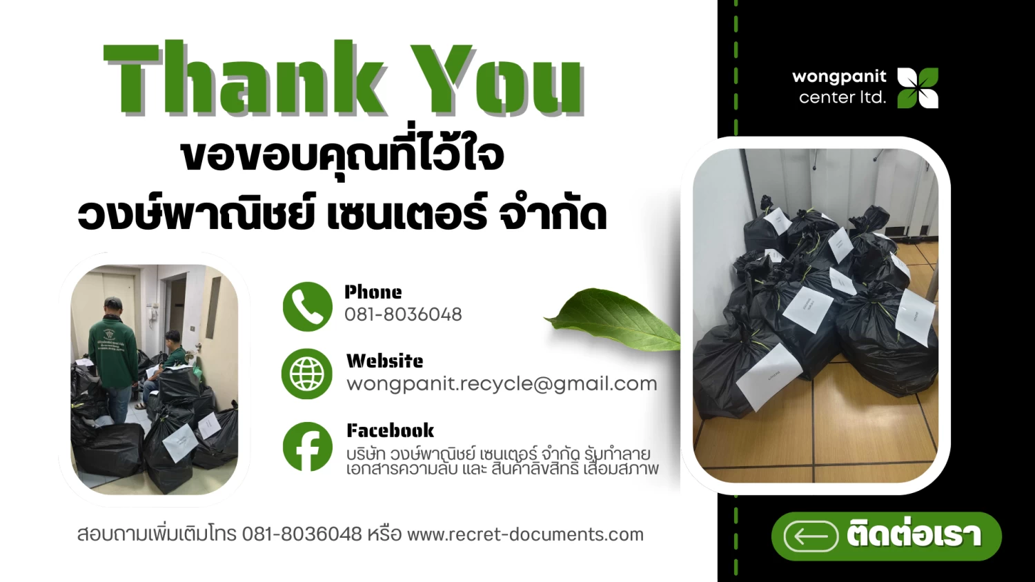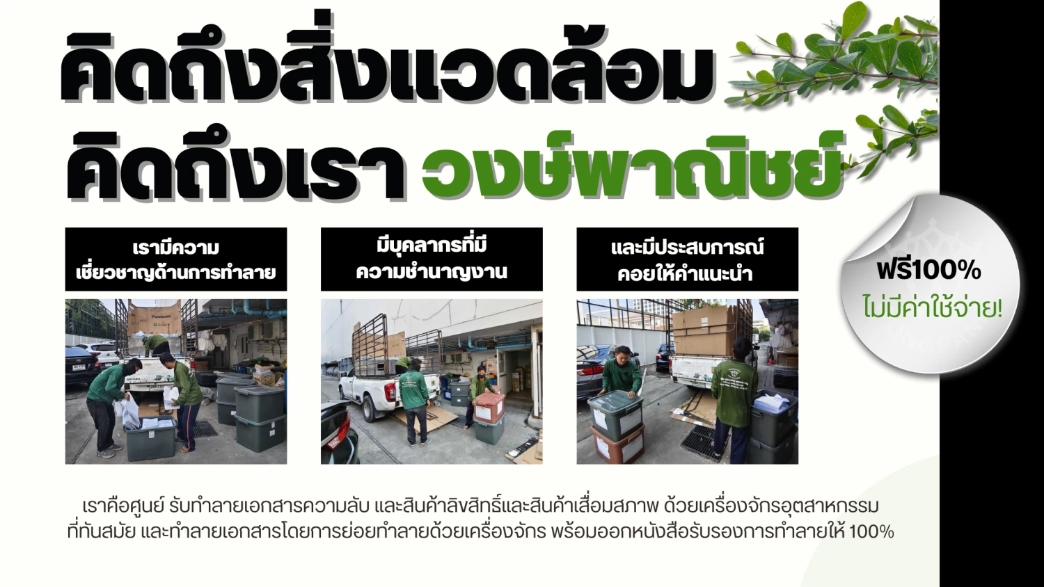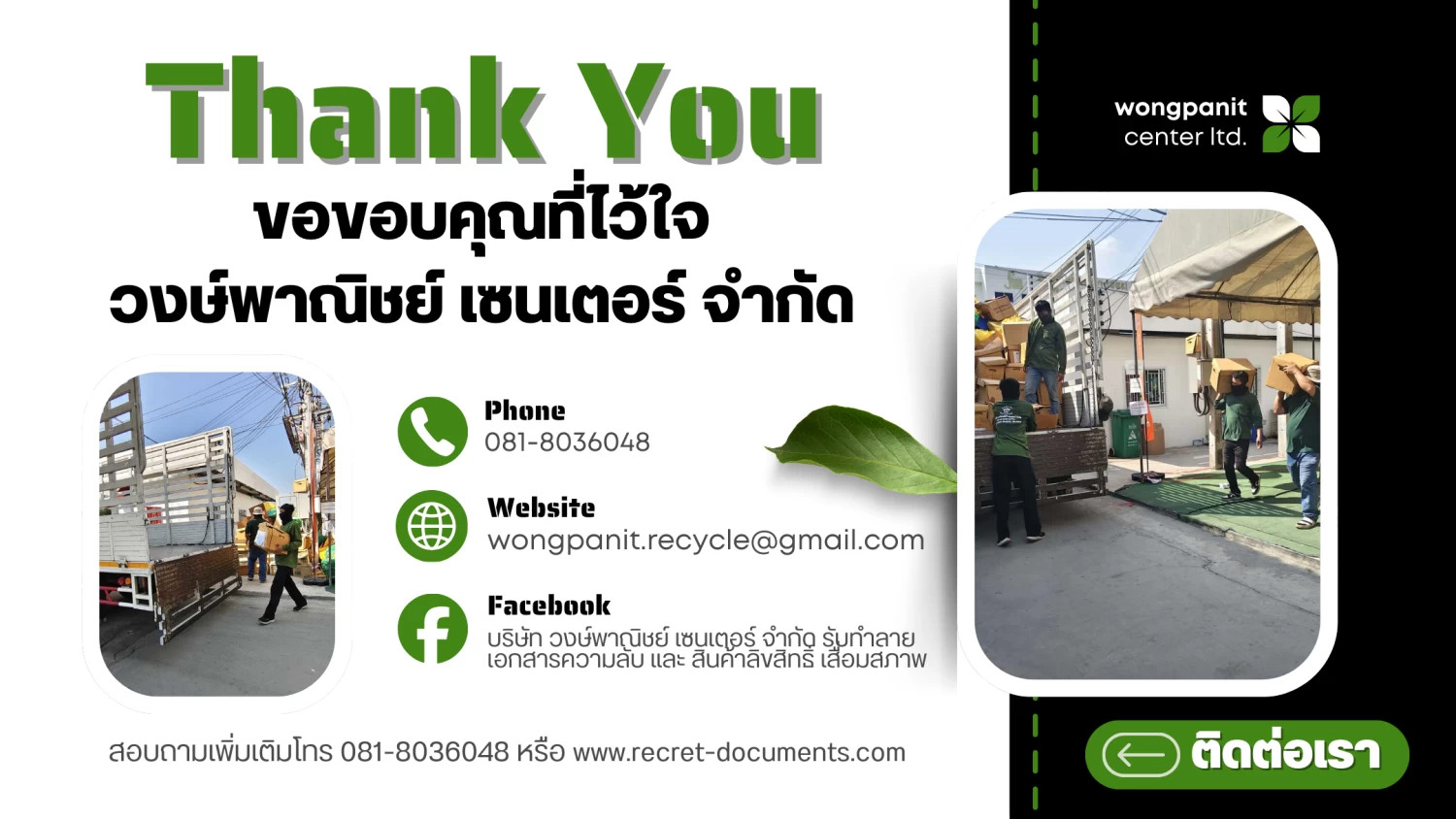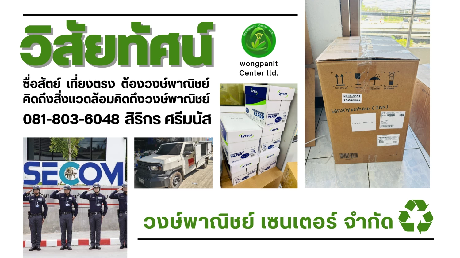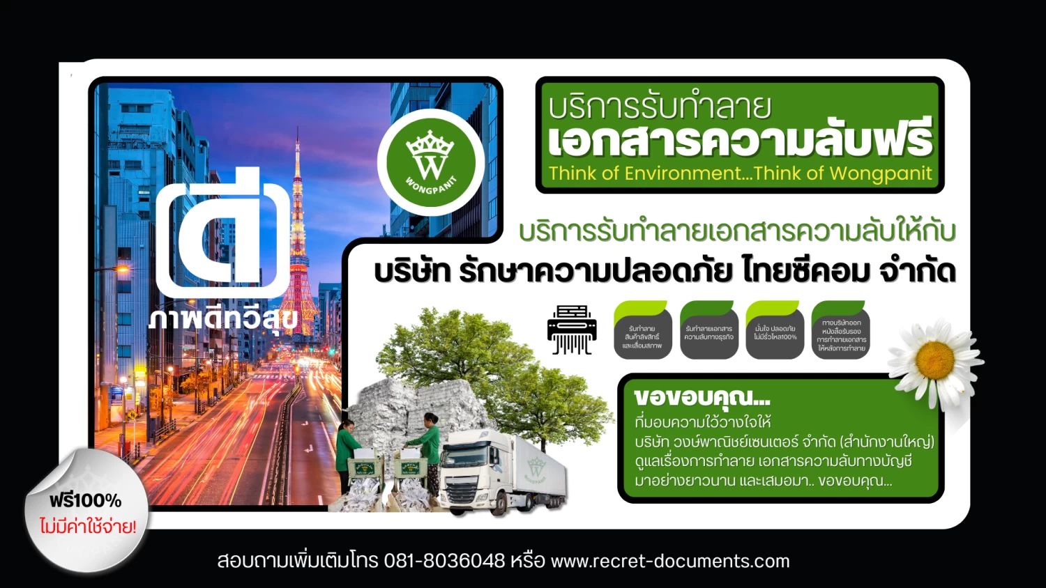 ☢️ บริการรับทำลายเอกสารความลับ และ สินค้าลิขสิทธิ์และสินค้าเสื่อมสภาพ ฟรี!♻️ บริษัท วงษ์พาณิชย์ เซนเตอร์ จำกัด เป็นผู้ดำเนินการรับทำลายเอกสารความลับ ให้กับ... บริษัท รักษาความปลอดภัย ไทยซีคอม จำกัด ประจำปี 2569 🙏🏻ขอขอบคุณ ที่มอบความใว้วางใจให้ บริษัท วงษ์พาณิชย์เซนเตอร์ จำกัด (สำนักงานใหญ่) ดูแลเรื่องการทำลายสินค้าลิขสิทธิ์และเสื่อมสภาพ มาอย่างยาวนาน และเสมอมา..