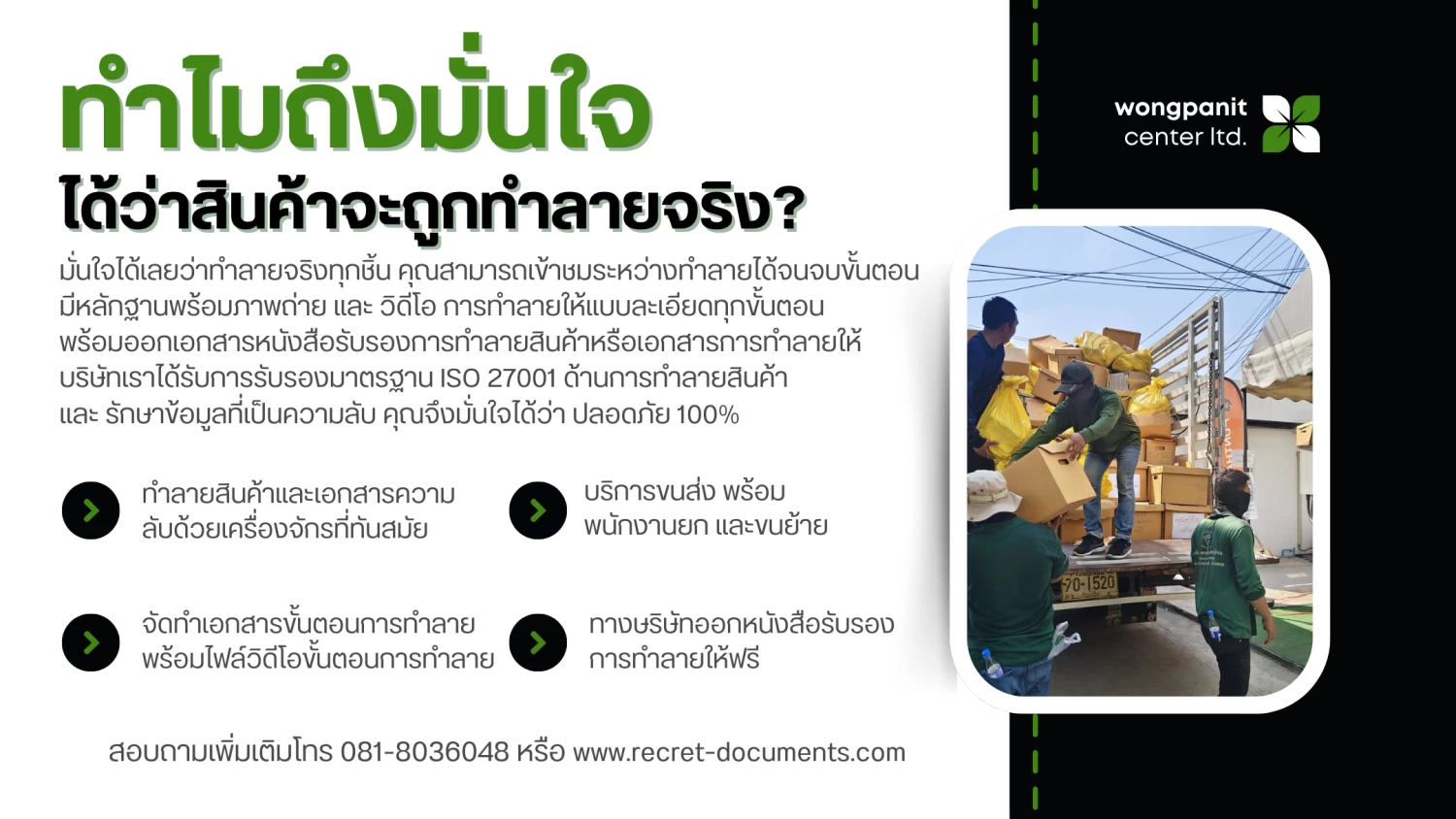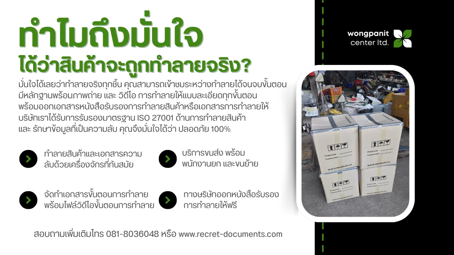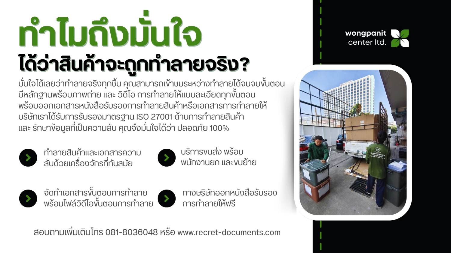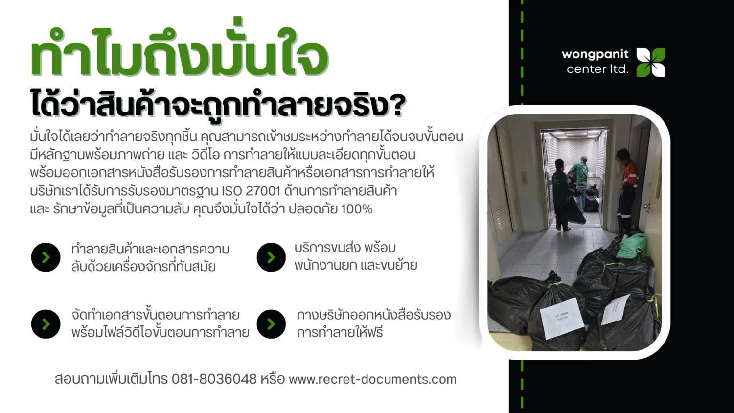 ☢️ บริการรับทำลายเอกสารความลับ และ สินค้าลิขสิทธิ์และสินค้าเสื่อมสภาพ ฟรี!♻️