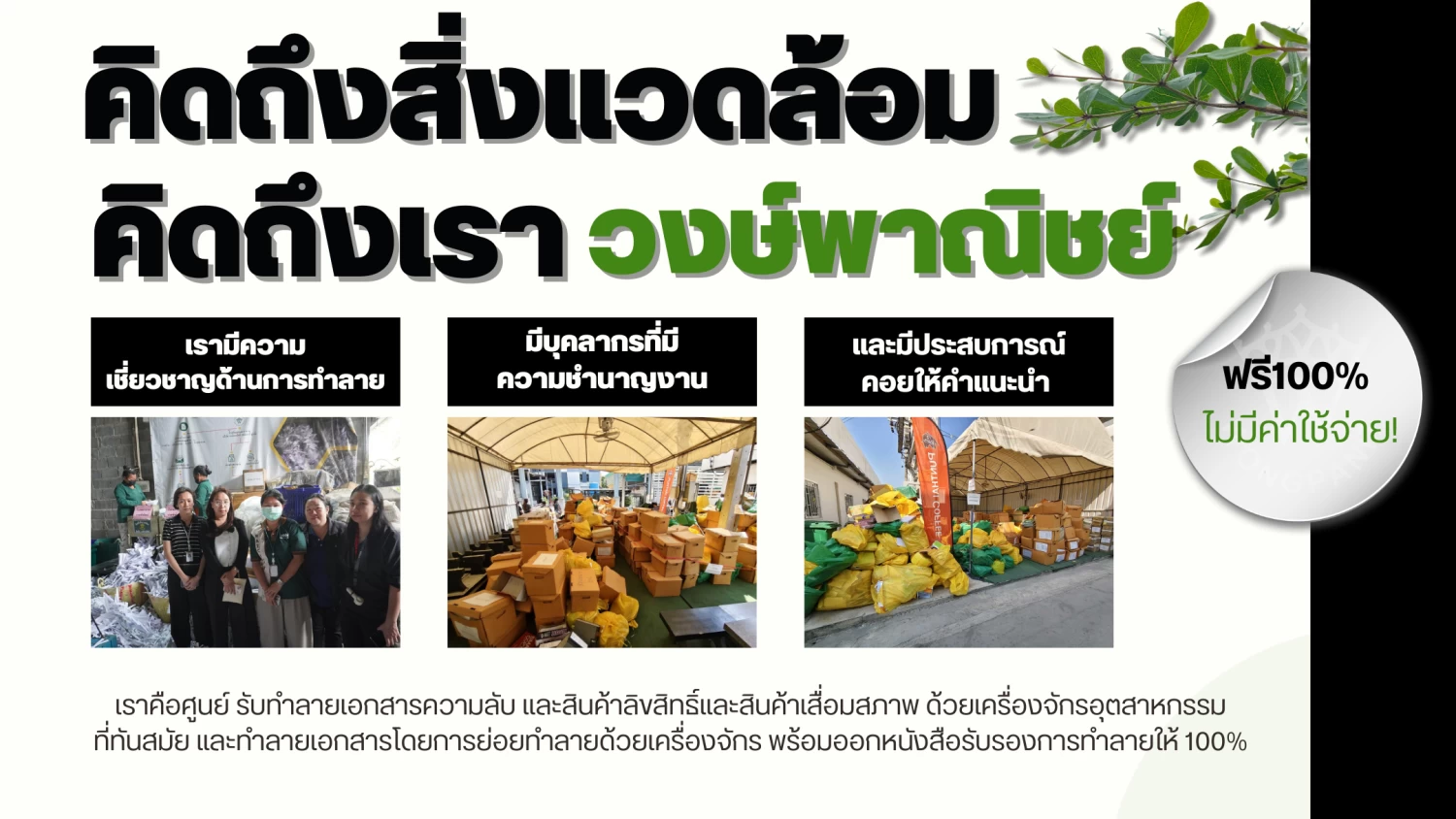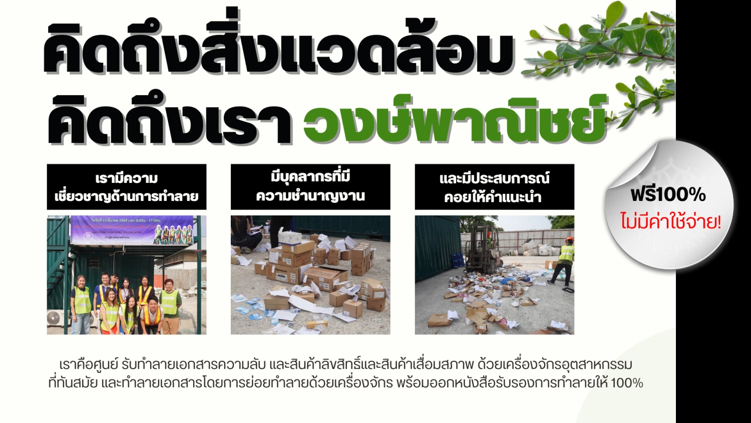 ☢️ บริการรับทำลายเอกสารความลับ และ สินค้าลิขสิทธิ์และสินค้าเสื่อมสภาพ ฟรี!♻️ บริษัท วงษ์พาณิชย์ เซนเตอร์ จำกัด เป็นผู้ดำเนินการรับทำลายเอกสารความลับ ให้กับ...บริษัท ภาพดีทวีสุข จำกัด ประจำปี 2569 🙏🏻ขอขอบคุณ ที่มอบความใว้วางใจให้ บริษัท วงษ์พาณิชย์เซนเตอร์ จำกัด (สำนักงานใหญ่) ดูแลเรื่องการทำลายสินค้าลิขสิทธิ์และเสื่อมสภาพ มาอย่างยาวนาน และเสมอมา..