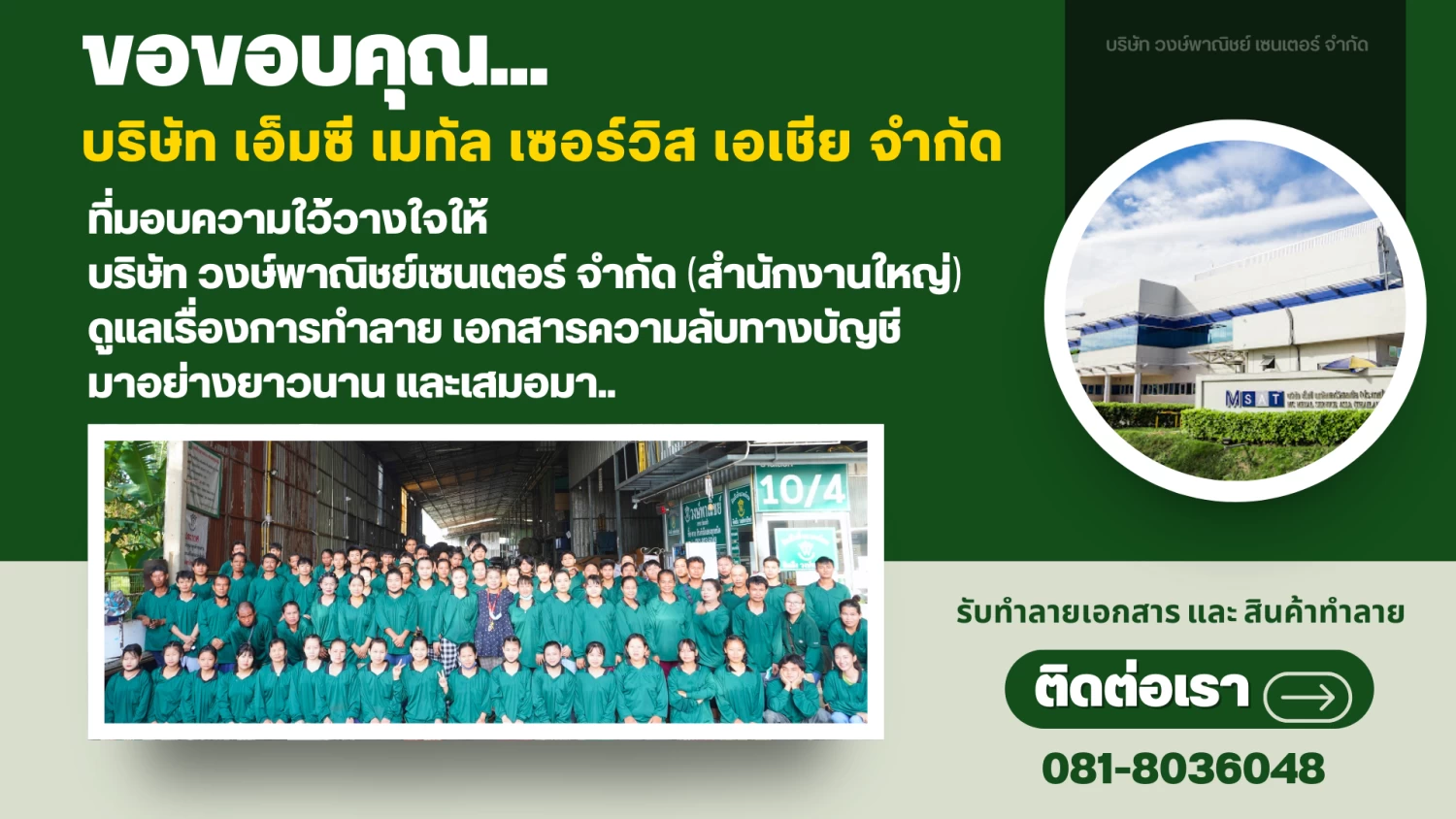 ☢️ บริการรับทำลายเอกสารความลับ และ สินค้าลิขสิทธิ์และสินค้าเสื่อมสภาพ ♻️ บริษัท วงษ์พาณิชย์ เซนเตอร์ จำกัด เป็นผู้ดำเนินการรับทำลายสินค้าลิขสิทธิ์และสินค้าเสื่อมสภาพ ให้กับ เอ็มซี เมทัล เซอร์วิส เอเชีย จำกัด 🙏🏻ขอขอบคุณ ที่มอบความใว้วางใจให้ บริษัท วงษ์พาณิชย์เซนเตอร์ จำกัด (สำนักงานใหญ่) ดูแลเรื่องการทำลายสินค้าลิขสิทธิ์และเสื่อมสภาพ มาอย่างยาวนาน และเสมอมา..