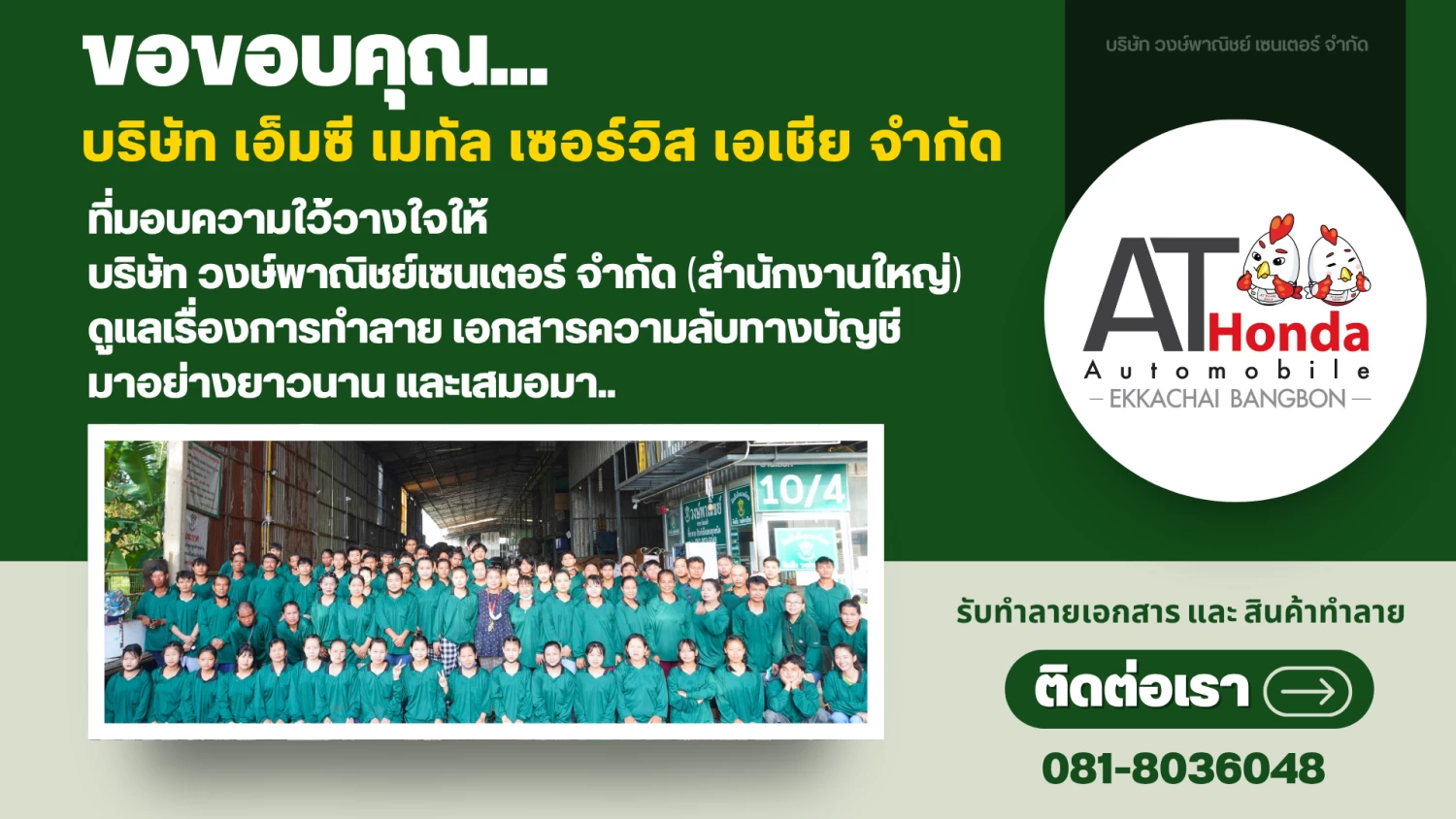 ☢️ บริการรับทำลายเอกสารความลับ และ สินค้าลิขสิทธิ์และสินค้าเสื่อมสภาพ ♻️ บริษัท วงษ์พาณิชย์ เซนเตอร์ จำกัด เป็นผู้ดำเนินการรับทำลายสินค้าลิขสิทธิ์และสินค้าเสื่อมสภาพ ให้กับ บริษัท เอที ฮอนด้า ออโตโมบิล (เอกชัย-บางบอน) จำกัด 🙏🏻ขอขอบคุณ ที่มอบความใว้วางใจให้ บริษัท วงษ์พาณิชย์เซนเตอร์ จำกัด (สำนักงานใหญ่) ดูแลเรื่องการทำลายสินค้าลิขสิทธิ์และเสื่อมสภาพ มาอย่างยาวนาน และเสมอมา..