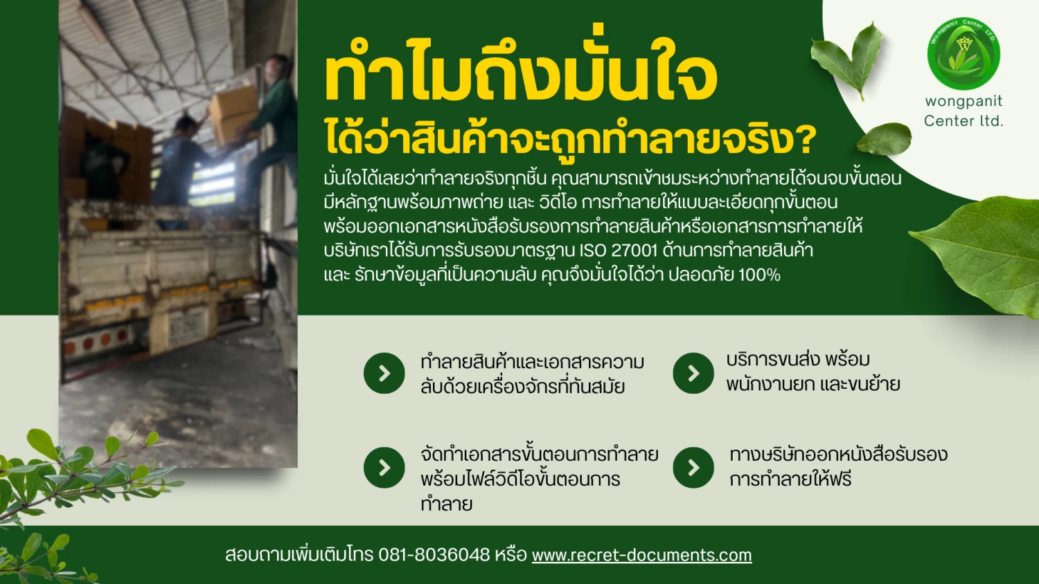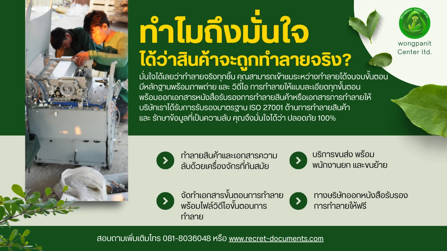 ☢️ บริการรับทำลายเอกสารความลับ และ สินค้าลิขสิทธิ์และสินค้าเสื่อมสภาพ ♻️