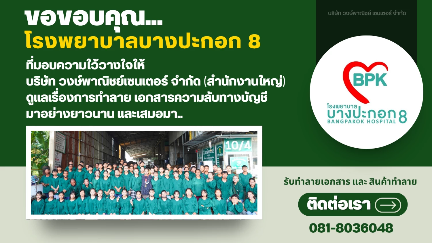 ☢️ บริการรับทำลายเอกสารความลับ และ สินค้าลิขสิทธิ์และสินค้าเสื่อมสภาพ ♻️ บริษัท วงษ์พาณิชย์ เซนเตอร์ จำกัด เป็นผู้ดำเนินการรับทำลายสินค้าลิขสิทธิ์และสินค้าเสื่อมสภาพ ให้กับ โรงพยาบาลบางปะกอก 8 🙏🏻ขอขอบคุณ ที่มอบความใว้วางใจให้ บริษัท วงษ์พาณิชย์เซนเตอร์ จำกัด (สำนักงานใหญ่) ดูแลเรื่องการทำลายสินค้าลิขสิทธิ์และเสื่อมสภาพ มาอย่างยาวนาน และเสมอมา..