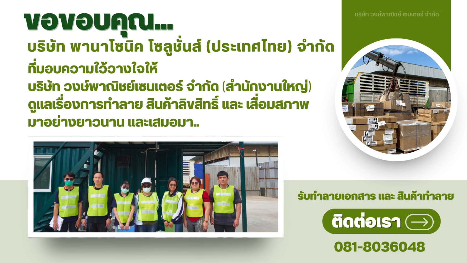 ☢️ บริการรับทำลายเอกสารความลับ และ สินค้าลิขสิทธิ์และสินค้าเสื่อมสภาพ ♻️ บริษัท วงษ์พาณิชย์ เซนเตอร์ จำกัด เป็นผู้ดำเนินการรับทำลายสินค้าลิขสิทธิ์และสินค้าเสื่อมสภาพ ให้กับ Panasonic บริษัท พานาโซนิค โซลูชั่นส์ (ประเทศไทย) จำกัด 🙏🏻ขอขอบคุณ ที่มอบความใว้วางใจให้ บริษัท วงษ์พาณิชย์เซนเตอร์ จำกัด (สำนักงานใหญ่) ดูแลเรื่องการทำลายสินค้าลิขสิทธิ์และเสื่อมสภาพ มาอย่างยาวนาน และเสมอมา..