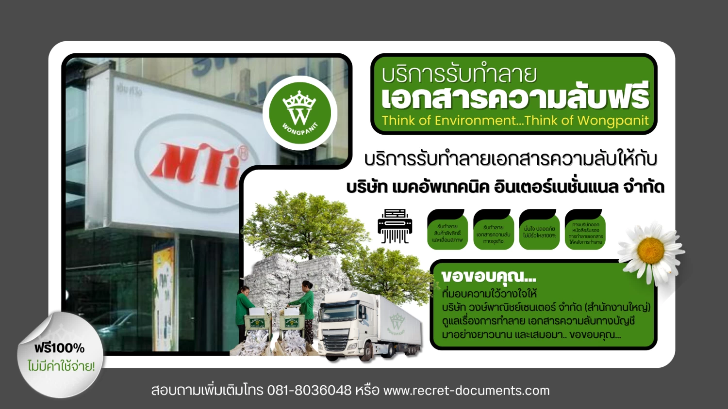 ☢️ บริการรับทำลายเอกสารความลับ และ สินค้าลิขสิทธิ์และสินค้าเสื่อมสภาพ ฟรี!♻️ บริษัท วงษ์พาณิชย์ เซนเตอร์ จำกัด เป็นผู้ดำเนินการรับทำลายเอกสารความลับ ให้กับ... บริษัท เมคอัพเทคนิค อินเตอร์เนชั่นแนล จำกัด ประจำปี 2569 🙏🏻ขอขอบคุณ ที่มอบความใว้วางใจให้ บริษัท วงษ์พาณิชย์เซนเตอร์ จำกัด (สำนักงานใหญ่) ดูแลเรื่องการทำลายสินค้าลิขสิทธิ์และเสื่อมสภาพ มาอย่างยาวนาน และเสมอมา..