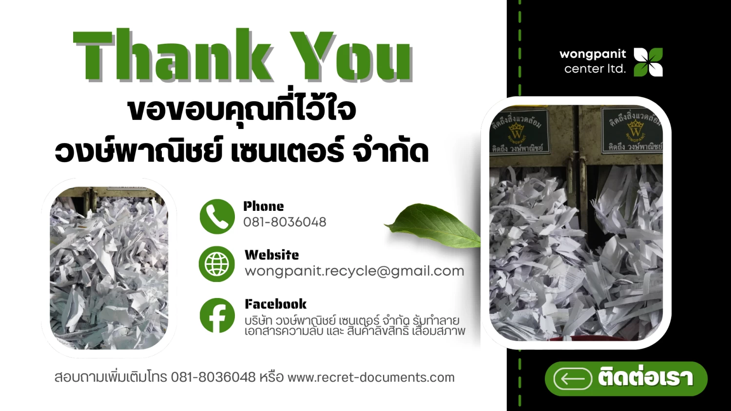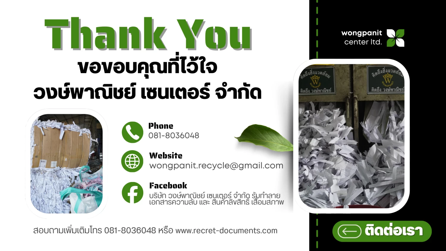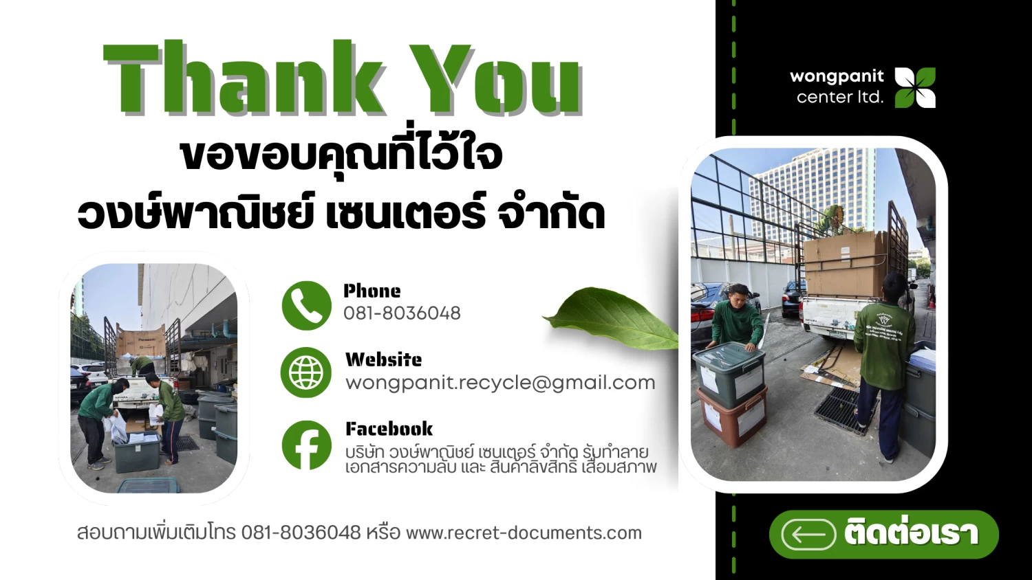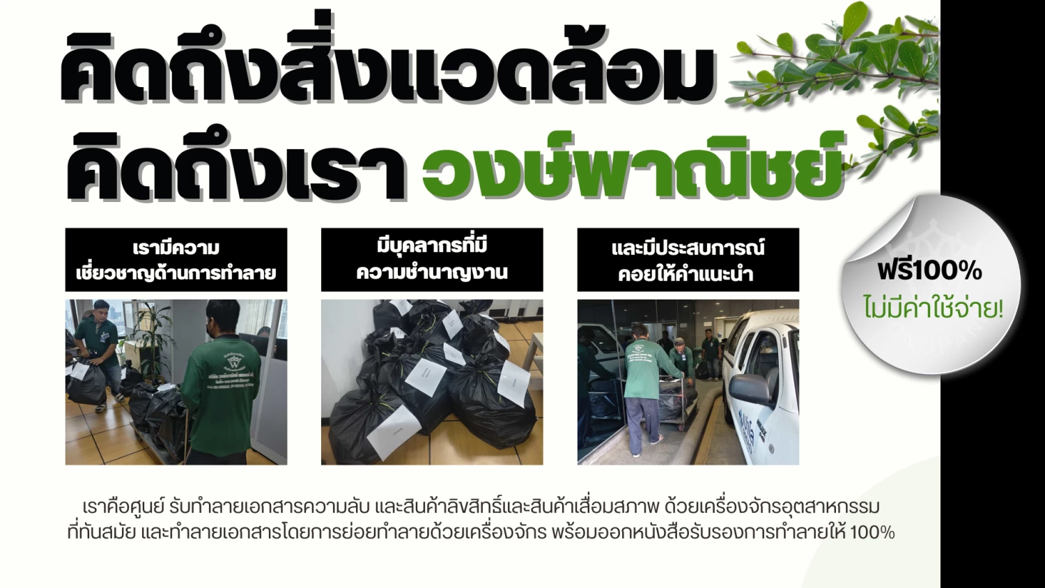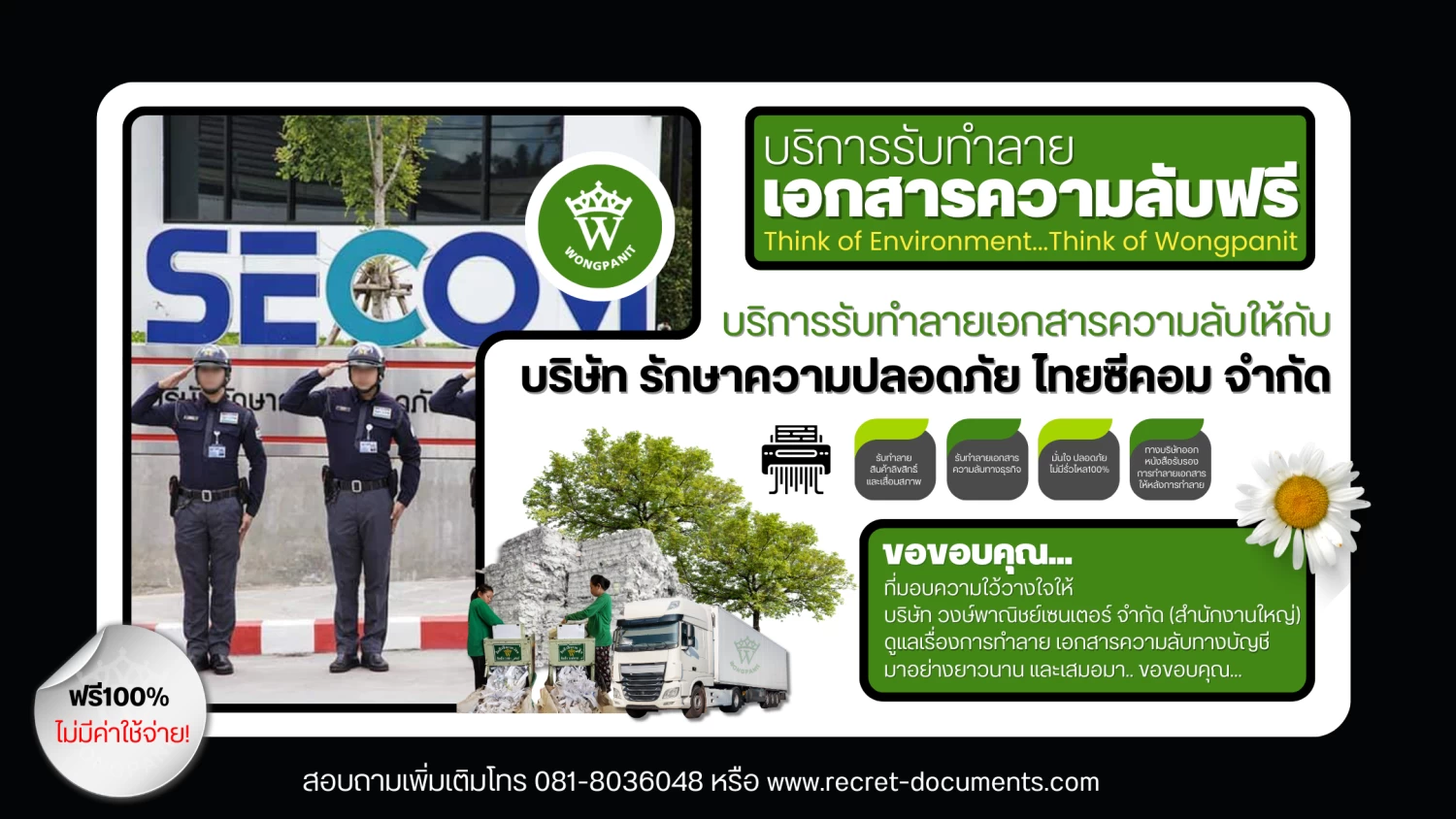 ☢️ บริการรับทำลายเอกสารความลับ และ สินค้าลิขสิทธิ์และสินค้าเสื่อมสภาพ ฟรี!♻️ บริษัท วงษ์พาณิชย์ เซนเตอร์ จำกัด เป็นผู้ดำเนินการรับทำลายเอกสารความลับ ให้กับ... บริษัท รักษาความปลอดภัย ไทยซีคอม จำกัด ประจำปี 2569 🙏🏻ขอขอบคุณ ที่มอบความใว้วางใจให้ บริษัท วงษ์พาณิชย์เซนเตอร์ จำกัด (สำนักงานใหญ่) ดูแลเรื่องการทำลายสินค้าลิขสิทธิ์และเสื่อมสภาพ มาอย่างยาวนาน และเสมอมา..