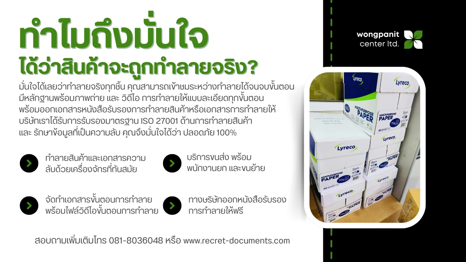 ☢️ บริการรับทำลายเอกสารความลับ และ สินค้าลิขสิทธิ์และสินค้าเสื่อมสภาพ ฟรี!♻️