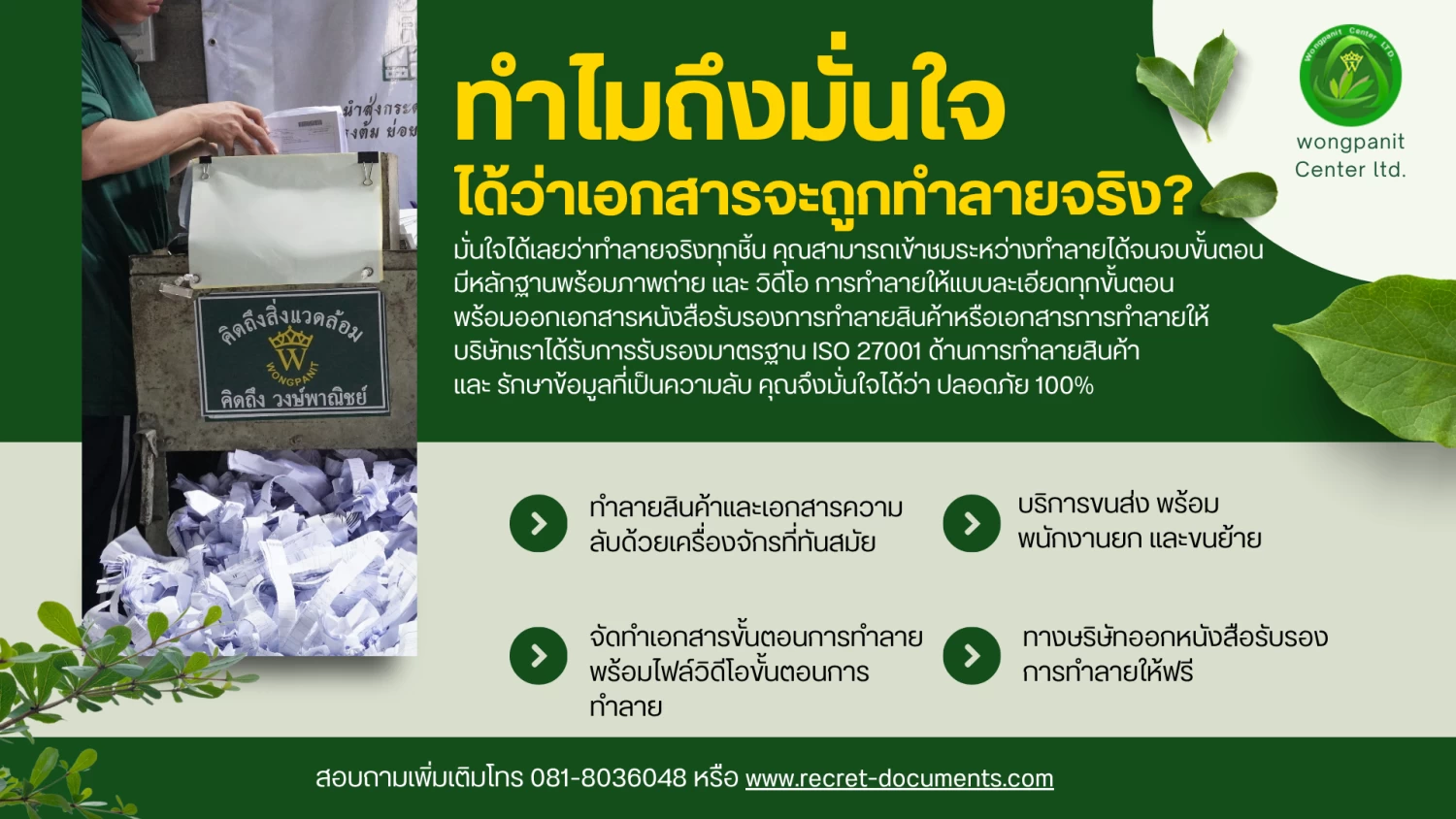 ☢️ บริการรับทำลายเอกสารความลับ และ สินค้าลิขสิทธิ์และสินค้าเสื่อมสภาพ ♻️